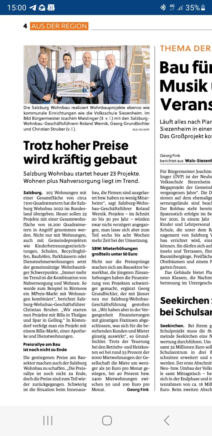 Kleiner Satz, große Wirkung für Köstendorf: Man verfolgt ein Projekt mit BILLA in Köstendorf. Die Gemeindevertretung wurde vom Bürgermeister nie darüber informiert.Auch die Salzburg Wohnbau (deren Chef übrigens ein ehemaliger ÖVP-Bürgermeister ist) hat es nie für notwendig erachtet ihre Pläne in der Gemeinde zu präsentieren. Das sieht alles so aus, als ob man keine Mitsprache der Bevölkerung in der Causa haben will und führt die vielen schlechten Entscheidungen in Sachen Brötzner-Areal weiter. Ich habe große Zweifel, dass da jemals ein Supermarkt hinkommt, bzw. der Festsaal endlich renoviert werden wird. Lösen wir den Vertrag auf und holen die Lebensmittelhändler zu Verhandlungen nach Köstendorf. Und wenn es kein Ergebnis gibt, dann nutzen wir das Areal für ein neues Gemeindeamt, einen neuen Kindergarten, Starterwohnungen etc. Es gäbe so viele Möglichkeiten.